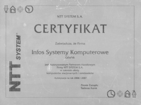 INFOS Systemy komputerowe oferuje swoje usługi informatyczne od 1995 roku. Zakres działalności naszej firmy obejmuje rejony Północnej Polski. Staramy się dostarczać kompleksowe rozwiązania w zakresie technologii informatycznych klientom małych i średnich przedsiębiorstw jak również z sektora instytucji rządowych i samorządowych. Posiadamy bogate doświadczenie, dzięki któremu sukcesywnie zwiększamy rzeszę nowych zadowolonych klientów. Kwalifikacje naszej firmy potwierdzone są certyfikatami Microsoft, Oracle i innych.